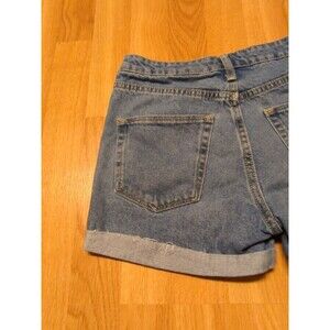 H & M Denim Shorts Womens Size 4 Rolled Up Cutoffs Medium Wash Mid Rise
