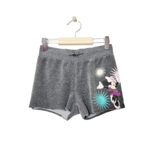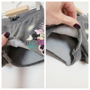 H & M Disney Minnie Mouse Gray Pink Teal Drawstring Waist Cut-Off LoungE Shorts
