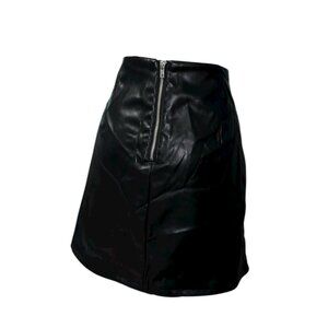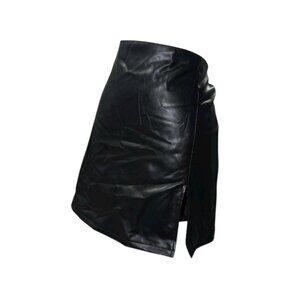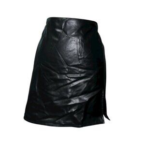 H & M Divided Front Slit Faux Leather Mini Skirt Sz 14 Womens Black