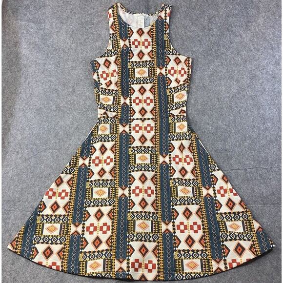 H & M Dress Womens Size XS A Line Stretch Sleeveless Aztec Design Mini