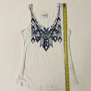 H & M - Ethnic Beaded Sleeveless Tank Top in White and Blue Size -