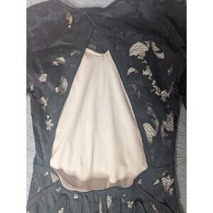 H & M GOLD LABEL-Bare back Bodycon Mini Lace Dress Nude lining size 2 GlamLook