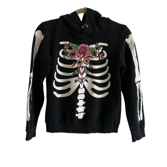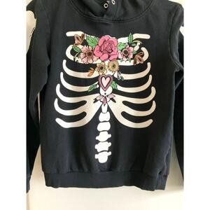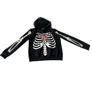 H & M graphic skeleton and flowers hooded shirt/hoodie/sweatshirt/pullover