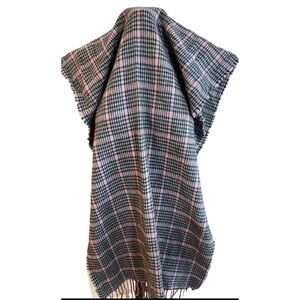 H & M Gray Pink Plaid Scarf Blanket Wrap Fringe 24" x 72" NWT