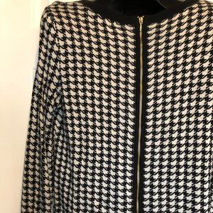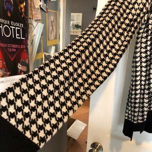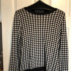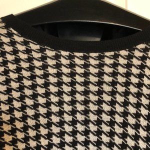 H & M large hounds tooth hi-lo crew neck sweater with back zip. Fun piece! Pre-loved sweater worn a couple of times and in great condition. Wool, polyacrylamide and viscose blend. Super comfy!