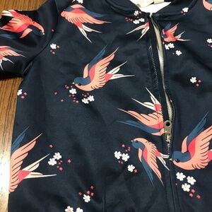 H & M Jacket Kid 4Y Blue Bird Bomber Preppy Modern School Neutral Retro Boho