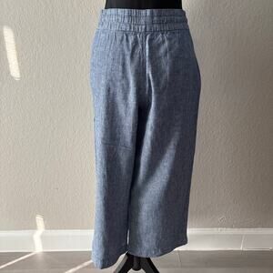 H & M LOGG Wide Leg Capri Pants Blue Sz 8 Nautical Granola Coastal Grandma Beach