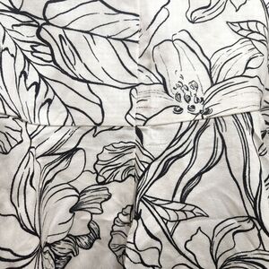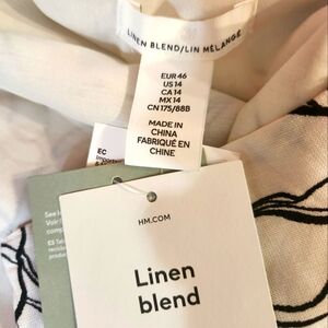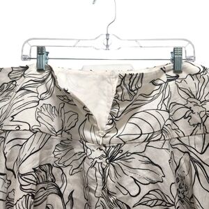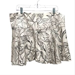 H & M Linen Blend Black White Tropical Leaf Print Mini Skirt Size 14 Hawaiian