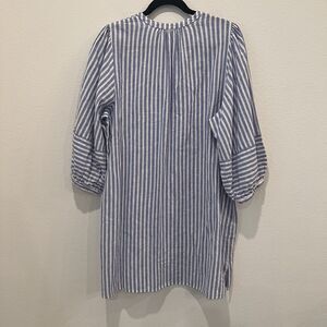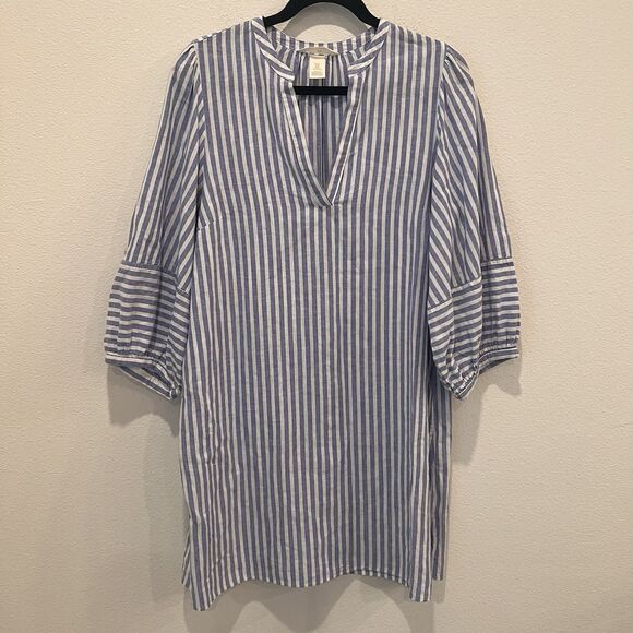 H & M Linen Blend Blue White Striped Tunic Mini Dress Size M Beach Vacation Chic