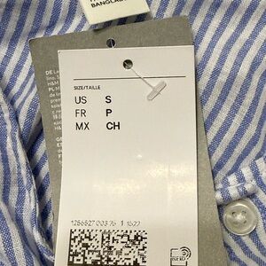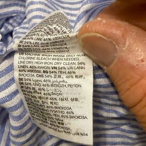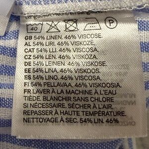 H & M Linen Blend Premium Selection Blue Striped Puff Sleeve Blouse NWT S