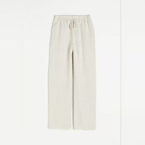 H & M Linen Blend Pull On Cream Drawstring Pants M