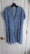 This adorable, feminine dress by H & M is a short, loose-fit tunic dress in a crinkled weave with a band collar and a V-shaped opening at the front. Short sleeves with turn-up cuffs, matching covered buttons down the front and a gathered seam at the hips for added volume. Unlined. It is in a lovely royal blue and white leaf pattern. It is now sold out in this color and size!