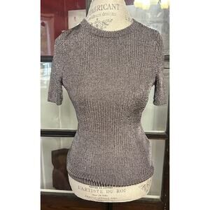 H & M Metallic Fiber Blend Shimmery Ribbed Short Sleeved Women Top Size M