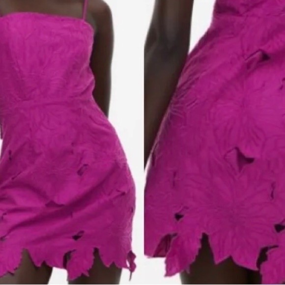H & M Mini Dress T-Straps Fushia Fitted Zipper Cut Out/Layered Lined Size S NWT