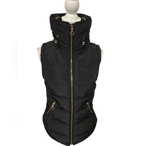 H & M black puffer vest with faux fur collar. Gold zipper in front and 2 front pockets. Size XS. Armpit to armpit appropriately 17 inches. Great pre own condition.