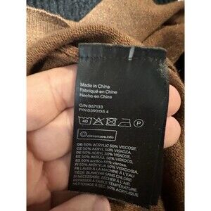 This H&M pullover tunic sweater top in women's small size is a stylish and cozy addition to any wardrobe. Made from a lightweight viscose and acrylic knit, this brown sweater features a solid pattern with a tight-knit style. The long sleeve and crew neck design make it perfect for casual occasions during the fall and winter seasons. The bohemian, classic, and preppy themes give it versatile appeal, while the crochet accents add a touch of flair to the overall look. Easy to care for with machine washable instructions, this sweater is a must-have for any fashion-forward woman.