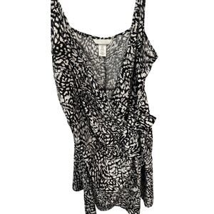 H & M Sleeveless Black and White patterned wrap mini sheath dress size XL