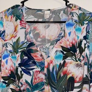 🌹H & M TROPICAL FLORAL FLOUSE SLEEVED DRESS