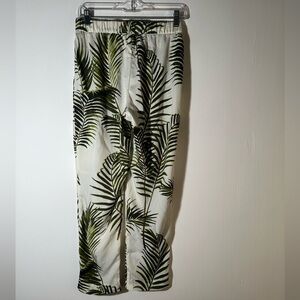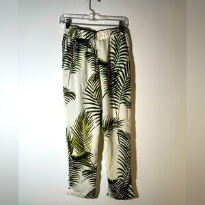 Elevate your style with these tropical leaf print men's pants. Featuring a vibrant green and cream design, these pants are perfect for a casual day out or a relaxed evening. Enjoy comfort and style in one package.