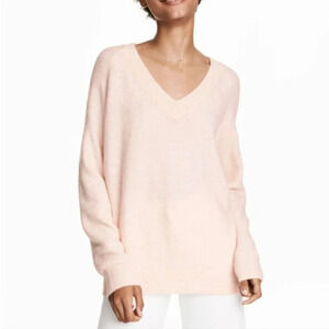 Oversized sweater in a soft knit. Low-cut V-neck, long raglan sleeves, and ribbing at neckline, cuffs, and hem.