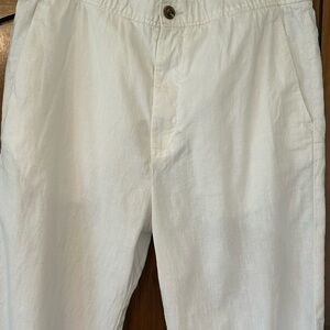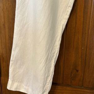 H & M White Linen/Cotton Elastic Waist Regular Fit Boho Beachy Pants Sz M