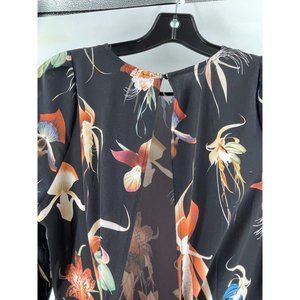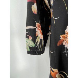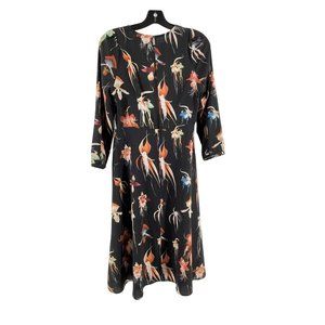 H M Women's 3/4 Sleeve Black Floral Print Slit Back Dress Size 8