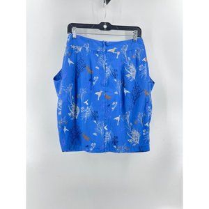 H & M Women's Blue Hummingbird Floral Print Pockets Skirt Back Zip Size 8