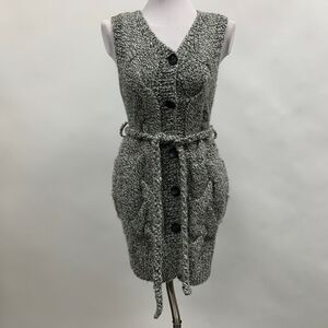 H & M Women's Long Cardigan Sweater 6 Black White Sleeveless Alpaca Blend