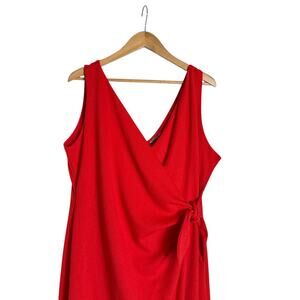 H & M Women's Stretch Textured Jersey Wrap Midi Dress V-Neck Size XL Red NWT