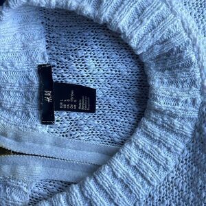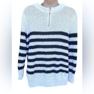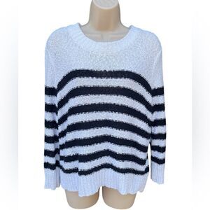 H & M Womens black /White Stripes Sweater Zip Back Cotton Round Neck