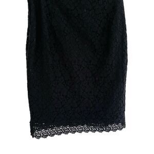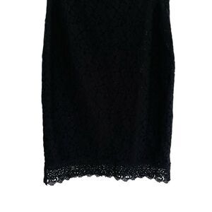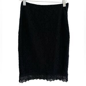 H & M black lace pencil skirt, side zipper size 2. Cotton scalloped crochet lace at bottom hem.