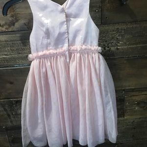 H & M dress in soft pink , silky bodice & netting at bottom ( netting is lined) for comfort & fullness. Fabric flower at waist. With satin sash