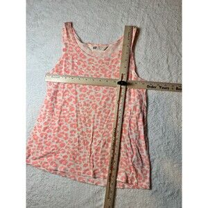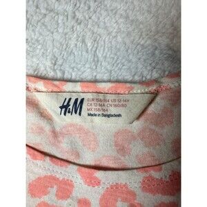 The H&M kids size 12-14yr coral salmon leopard print tank top with sequin accents is a stylish and eye-catching addition to any young girl's wardrobe. Made from 100% cotton, this sleeveless top features a scoop neck and unique leopard print pattern accented with sequins for added sparkle. The tank top is perfect for a casual yet fashionable look, and should be hand washed to maintain its vibrant colors and design. Ideal for a girl who wants to make a statement with her outfit.