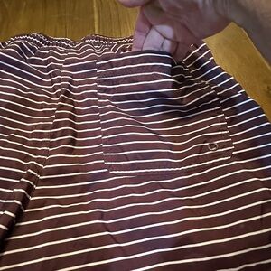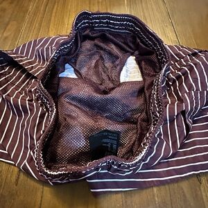 H & M lined drawstring shorts, maroon with white stripes size medium polyester