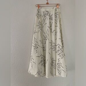 Calf-length, circular skirt in an airy weave made from a linen blend. High waist with a concealed zip and hook-and-eye fastener at one side. Unlined.