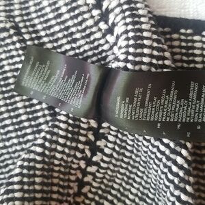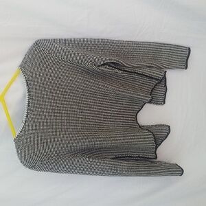 black trim at ends of sleeves, side seams, bottom of hem and just below shoulders on the front