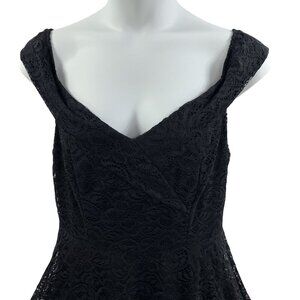 This dress tells a tale of timeless elegance with its intricate lacework and flowing high-low hemline. Designed for graceful movements, the sleeveless silhouette pairs beautifully with the flattering V-neckline. A hidden back zipper ensures a polished finish, while the black lace exudes sophistication, making it a captivating choice for evening soirées.