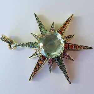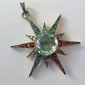 Auth H.Stern 18K Gold Diamond Sapphire Prasiolite EXTRA LARGE Star Pendant.