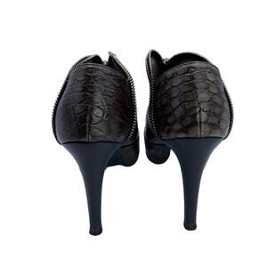 H | Williams Women Brown Croc Print Leather Pointed Toe Heeled Ankle Booties 37