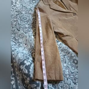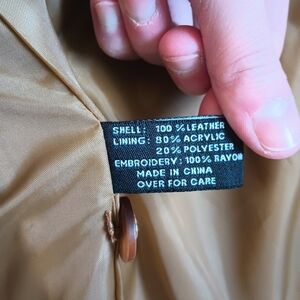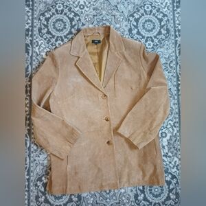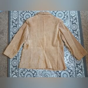 H Y Womens Vintage Leather Blazer XL Tan Mobwife 70s Hippie Quiet Luxury Classic