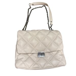 H and M White Quilted Flap Bag with Crossbody or Shoulder Silver Chain 12x10