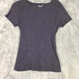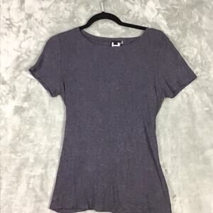 H by Bordeaux Womens Large Gray Ribbed Knit Scoop Neck Short Sleeve T-Shirt Top