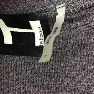 The H by Bordeaux Ribbed Knit T-Shirt in Licorice Gray is a chic and versatile addition to any wardrobe. Designed for comfort and style, this lightweight tee is made from a soft spandex-rayon blend that provides just the right amount of stretch. Perfect for casual days, travel, or layering in spring, summer, and fall.