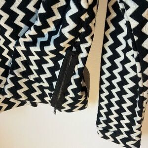 H by Bordeaux pullover longsleeve boatneck sweater. One Size. Funky black and white zigzag pattern. Funky zippers along both hips!! Straight cut, thick slight stretch material. 75% rayon, 25% poly. Flat lay 23.5” L, 24” P-P. #punk #goth #retro