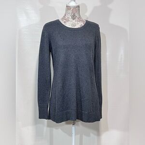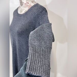 Charcoal gray crew neck sweater from H by HALSTON, size S. Top has ribbed cuffs and hemline.