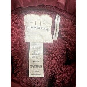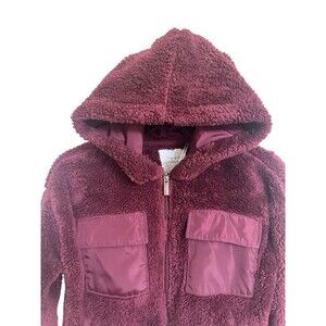 H by Habitual Girls M 10/12 Burgundy Maroon Sherpa Fleece Hooded Jacket. Zips up the front. Very soft sherpa fleece 100% polyester material. Large chest pockets and open hand pockets. Stored in a smoke-free environment.