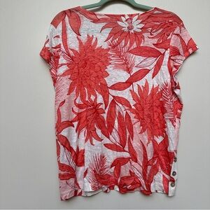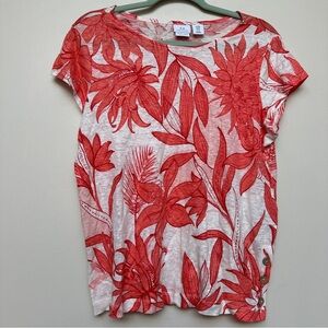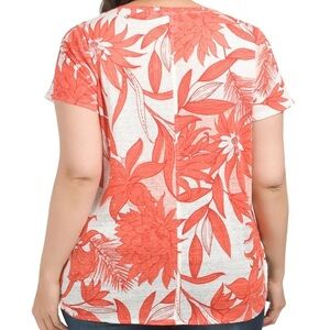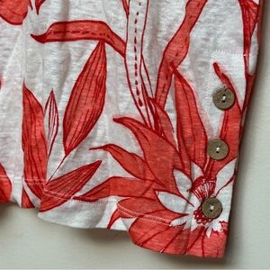 H by Halston 100% Linen Orange Floral Top Size Medium