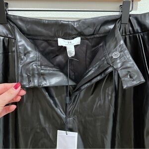 H by Halston Ankle Length Straight Leg Black Faux Leather Pants Size L