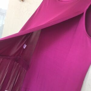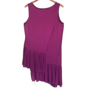 H by Halston, sleeveless, flapper style, slip dress. Pleated asymmetrical hemline detail. Cross over back closure. Deep purple/almost a deep red wine color. 86% polyester 14% spandex. Size medium. See photos for measurements to ensure fit.