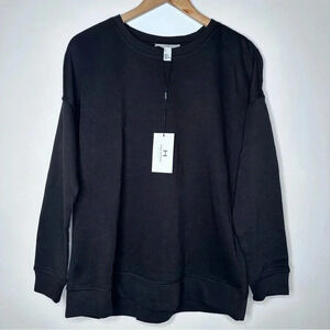 H by Halston Black Crew Neck Oversized Sweatshirt Size Small